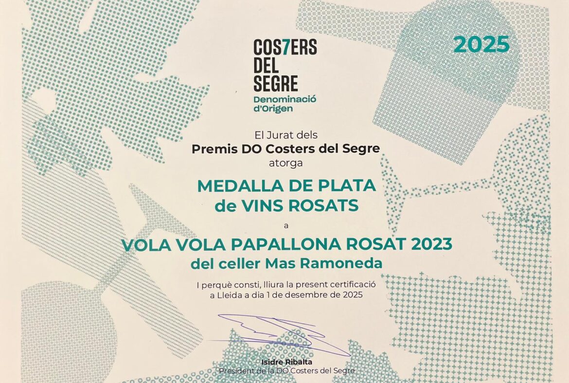 Amb molta alegria volem compartir que Mas Ramoneda ha estat reconegut amb la Medalla de Plata en la categoria de Vins Rosats als recents premis de la DO Costers del Segre, en reconeixement al nostre Vola Vola Papallona Rosat 2023. Aquest premi posa en valor la feina feta al celler...